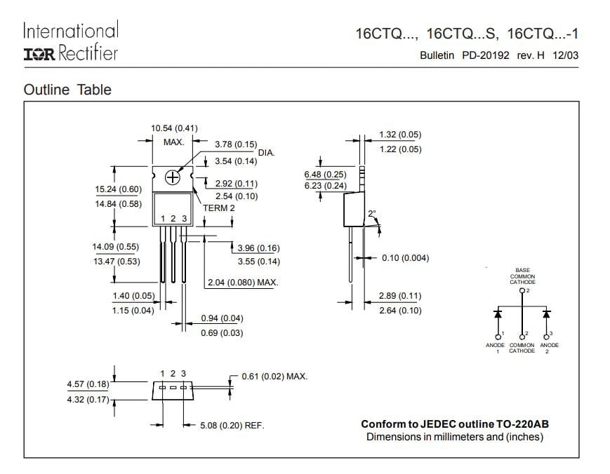 16CTQ100 ,16CTQ100 DIODE SCHOTTKY 100V 16A TO-220AB - ARTAK KATOT