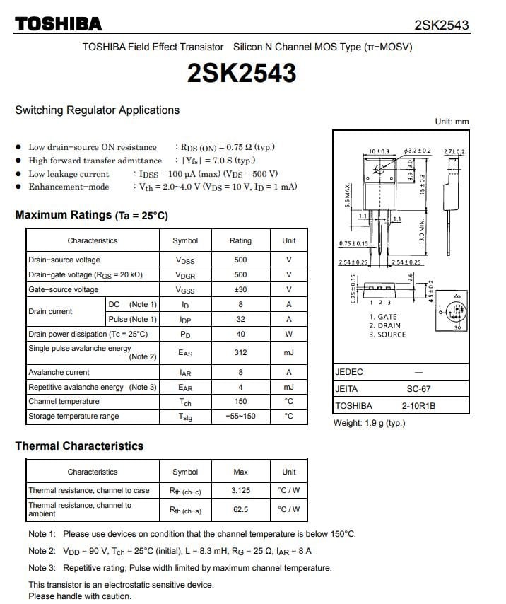 2SK2543 - K2543 - 8A. 500V. N KANAL MOSFET