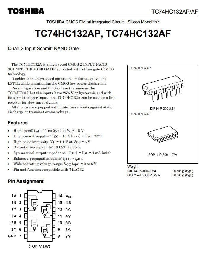 74HC132AP - 74HC132 DIP - TC74HC132AP Quad 2-Input Schmitt NAND Gate