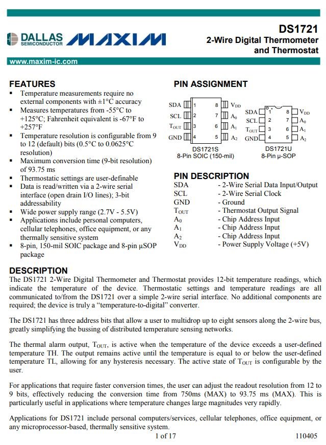 DS1721 - 1721 - Digital Thermometer and Thermostat