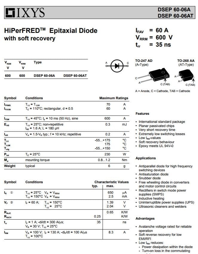 DSEI60-06A , DSEI 60-06 , 60A . 600V HIZLI DİYOT