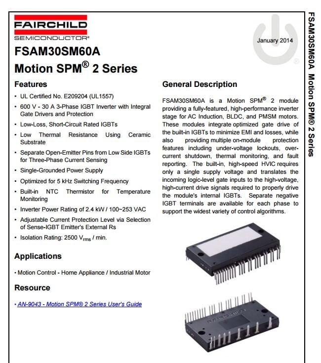 FSAM30SM60A - FSAM30SM60 - 30A 600V IGBT MODÜL