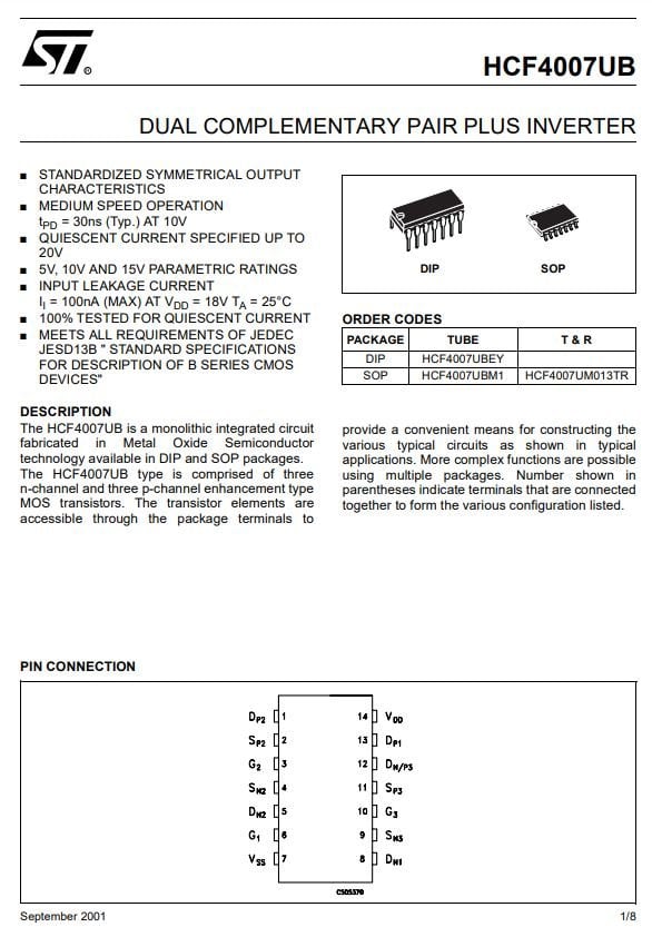 HCF4007UBE - 4007 - DUAL COMPLEMENTARY PAIR PLUS INVERTER