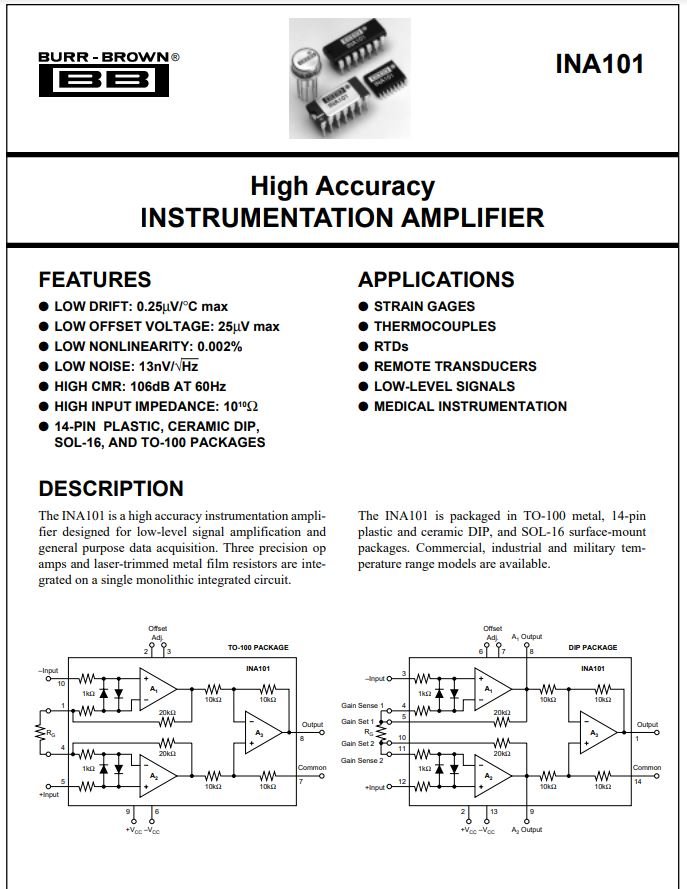 INA101CM - INA101 - High Accuracy INSTRUMENTATION AMPLIFIER