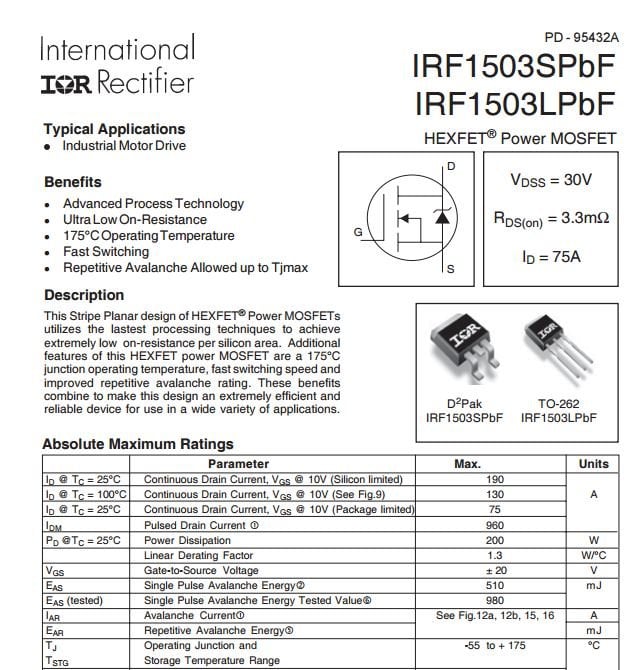 IRF1503S - F1530S - 75A. 30V. MOSFET - D2PAK