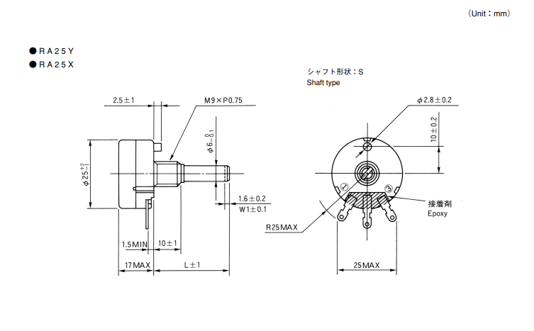 RA25Y20SB502 - 5KR POTANS TOCOS - RA25Y 20S B502 - RA25Y SERIES