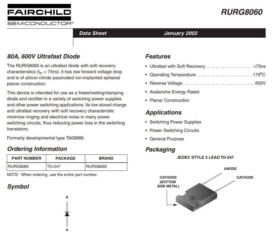 RURG8060 - rurg8060 - 80A. 600V. Ultrafast Diode
