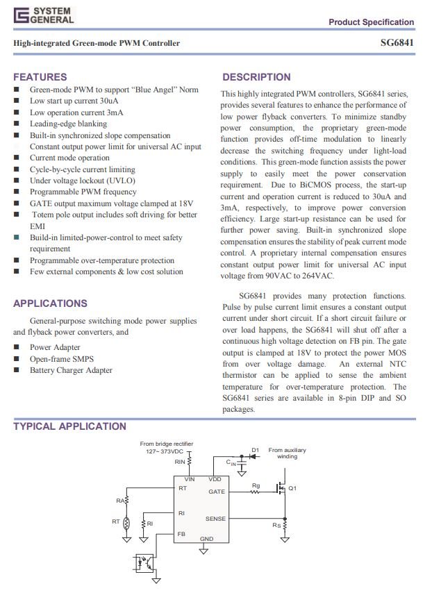 SG6841DZ - SG6841 - High-integrated Green-mode PWM Controller
