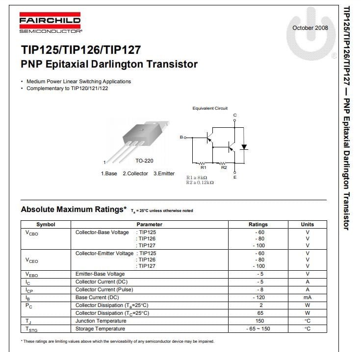 TIP127 - PNP Epitaxial Darlington Transistor - 5A - 60V